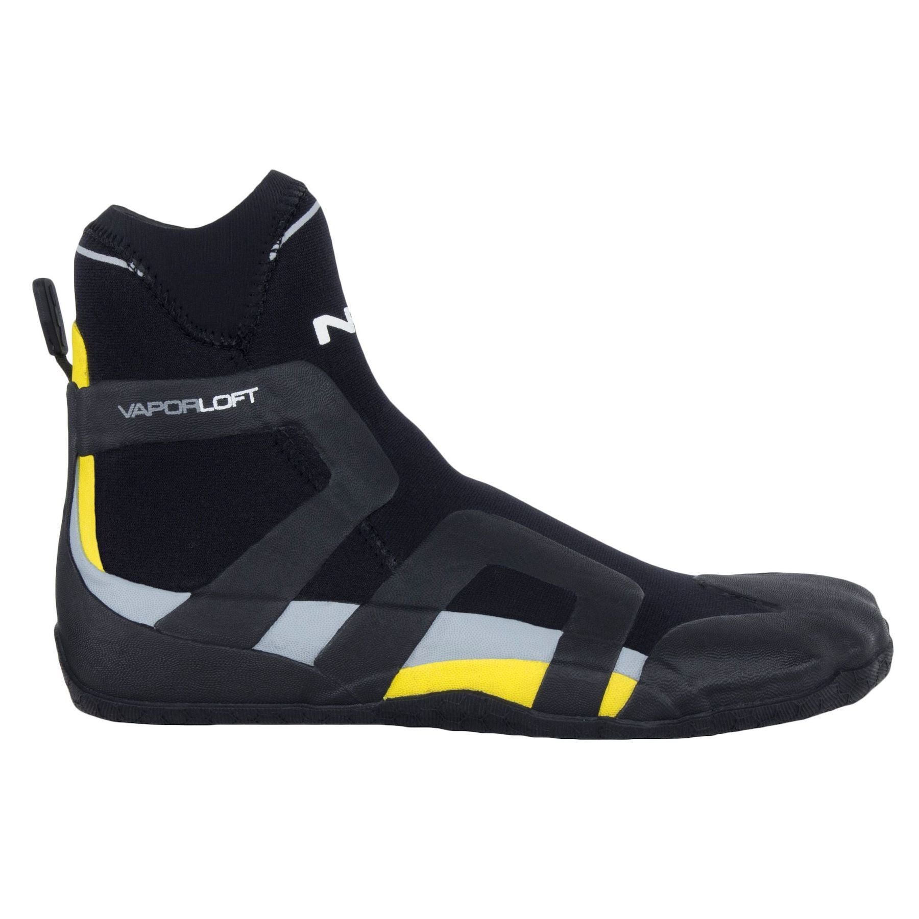 - A handy webbing grab tab on the ankle helps you pull the sock on, but stays out of the way in your boat.